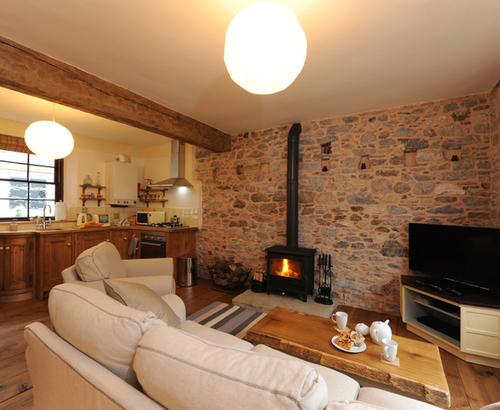 Inside, you’ll find a cosy and comfortable open plan living, kitchen and dining area with wooden beams and exposed stone walls, which really give this home a lovely character. On colder evenings snuggle up in front of the wood burning stove with a good book.