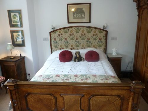 Double bedroom with magnificent wooden bed and large window to take in the view.