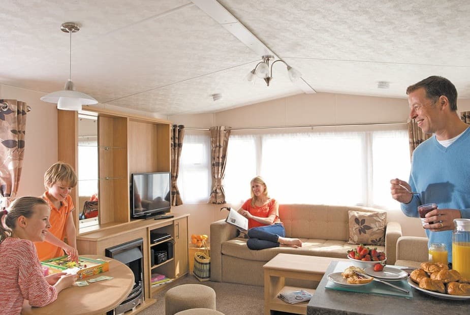 12ft-wide caravan with one double and two twin. Additional sleeping for two in the lounge area. Shower. DVD. Double glazed and centrally heated.