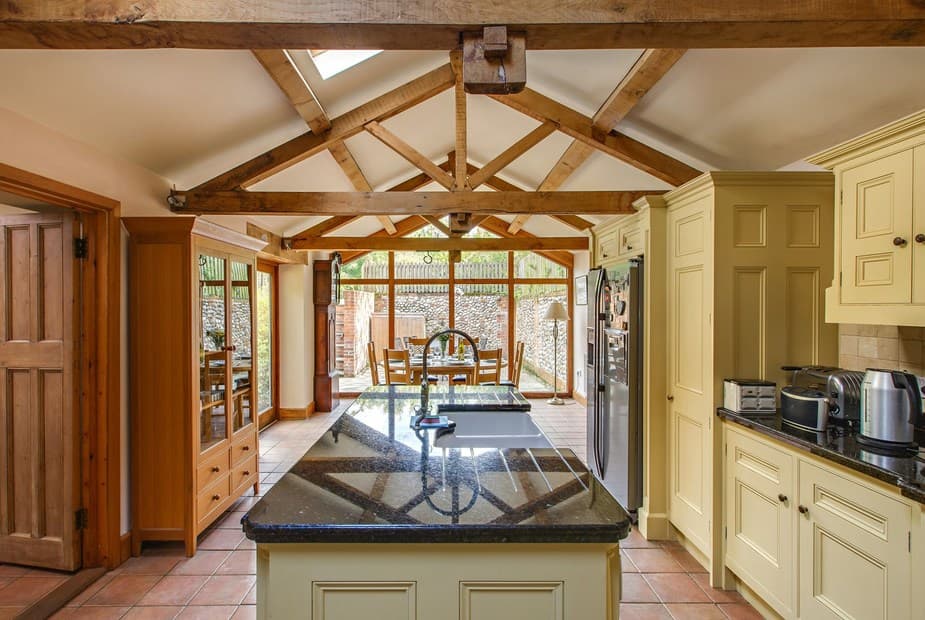 On entering this traditional Norfolk flint detached cottage, you will find a spacious and bright lounge with plenty of comfortable seating, TV and DVD. There s also a formal dining room where you can enjoy a meal in style, or sit back in the study/reading room where you are welcome to peruse the owner s large book collection, providing they remain in the property. Exploring further, you will find a large, light and stylishly designed kitchen with oak beams, a double butler island sink, induction hob, oven, American style fridge/freezer, microwave, washing machine and dishwasher. The kitchen faces due east to make the most of the morning sun and also features a separate breakfast/dining area.