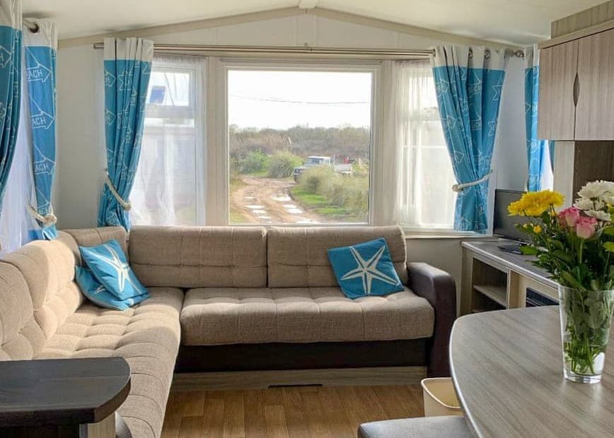 Caravan with one double, two twins. Shower. Double glazed and centrally heated. No pets.