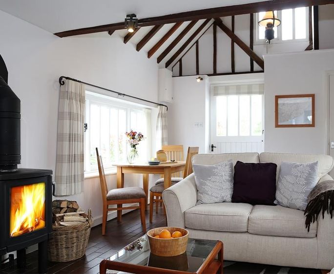 Beautiful setting for this open plan cottage. Had pretty much everything we needed. Log fire, good shower, huge bed and lovely views. Local pubs are better for a drink rather than food but Rye is a short drive away.Perfect for a relaxing holiday.