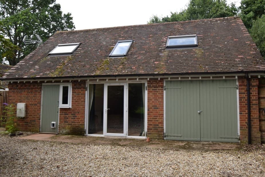 Heading back into the kitchen you will find a flight of stairs rising to the first floor. The generous gallery style bedroom is set into the eaves and has a double bed dressing area and contemporary en-suite shower room and WC. This bright and airy space is lined with sky lights where you may catch a glimpse of the starry skies often found here. Heading outside from either the lounge or the kitchen you will find a patio with garden furniture set beneath the trees the perfect place to enjoy dining al fresco. A lawn adjoins the terrace and leads down to a gated paddock which you may walk across to gain direct access to the New Forest National Park via the owners private foot bridge.