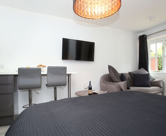 Discreetly set back from the road behind private electric gates, the ground floor apartment offers a suite style bedroom with a king size bed, dressing table and matching bedside tables, and even a large flat screen TV. With a purpose built pocket size kitchen and breakfast bar you can even whip up an evening meal or venture out to enjoy the cities vibrant dining scene, if you fancy a break from cooking.