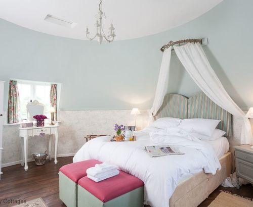 Master bedroom (sleeps 2) within the roundel accessed via a short staircase from the first floor. 5ft double bed