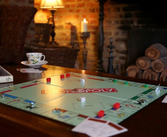 Hallway, with grand 'decorative' inglenook fireplace, seating for 9/10 guests, TV and DVD player and games cupboard.