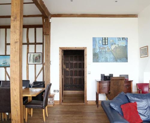 This is a truly special and highly flexible holiday home, a wonderful restored Kentish Barn in a sought after location surrounded by open countryside yet only 2 miles from the City of Canterbury. This holiday barn has been beautifully refurbished to offer a spacious holiday home for large groups or families wanting to celebrate a special occasion. With exposed oak beams,wooden floors and amazing views this self catering holiday home is very special. There is a large sunny south facing terrace where you can relax and enjoy the surrounding countryside. With much to do in the area, both in and around the City of Canterbury this is a prime location for a large holiday house. For larger groups options are now available for up to 20 guests, information on request.