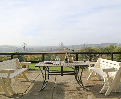 Norton Barn: sleeps 14, within 5 bedrooms, 3 family bath/shower-rooms, two floor living, open plan reception area with panoramic country views, large south facing terrace.