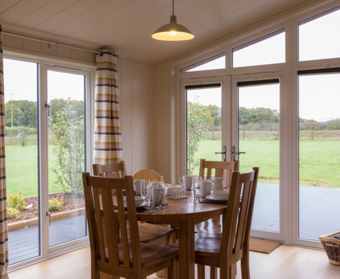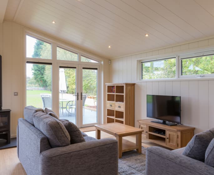 Start each day by enjoying the views through the living area’s floor to ceiling windows with your morning coffee, and if you step outside onto the furnished terrace you’ll be able to enjoy the tranquillity before a busy day exploring. The open plan design of the living, kitchen and dining space make this lodge a spacious choice for groups of friends or a family holiday.
