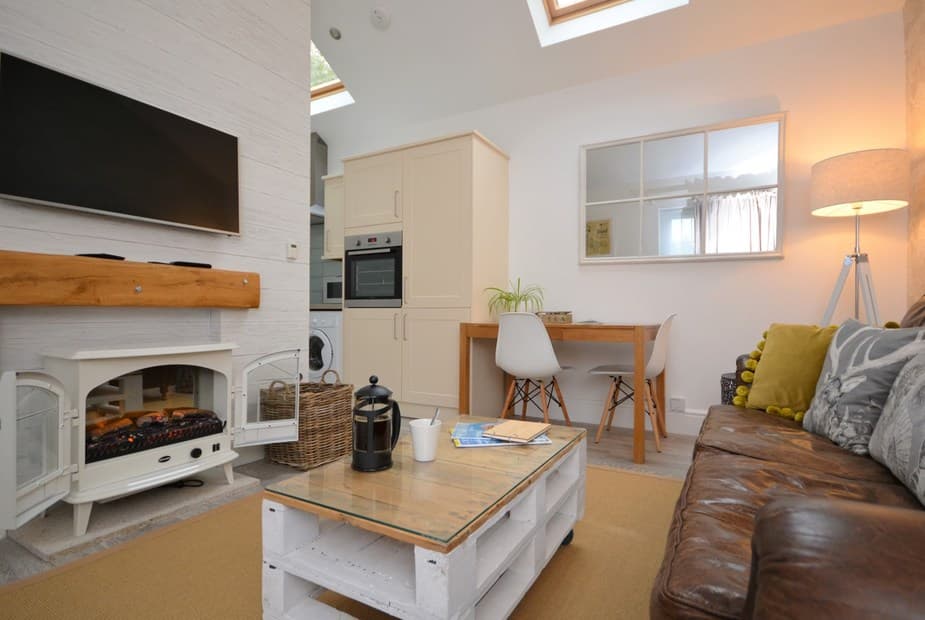 The Treffry Viaduct built by a local mine owner in 19th century to carry an industrial railway line also makes for an interesting and alternative day out. Other attractions include cycling at Cardinham the National Lobster Hatchery Newquay Zoo Karting at St Eval many National Trust properties and an 18 hole golf course in Bodmin. The property is accessed via narrow country lanes. Upon arrival at the property an annex to the owners accommodation and accessed via 4 external steps enter into the central hallway which leads to the open-plan lounge/kitchen/diner. This beautifully styled and welcoming space is the perfect place to relax after a day exploring take time to sink into the sofa relax and take in your favourite movie.