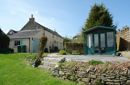 … in Burlawn, a beautifully restored, 300-year-old detached cottage surrounded by an enclosed lawned garden with a pretty little summer house (table/chairs).