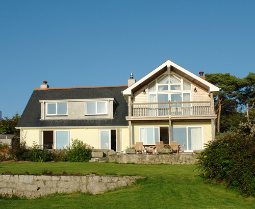 … in Feock, a stunning waterside house, designed to make the most of wonderful views, spacious rooms and large windows. The enclosed garden is mostly lawn, with flower beds, fruit trees and patio (table/chairs, barbecue). Kennels available. Kayaks, boats and bicycles can be hired, by arrangement. Moorings for boats and kayaks via gated access to Restronguet Creek and the Carrick Roads waterways.