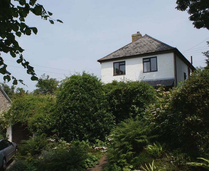 … on the steep hillside in Boscastle, a detached house with indoor
