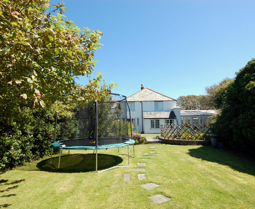 … in Bossiney, a large semi-detached house which started life as two cottages 200 years ago, now providing a wonderfully rambling house with masses of space and a big, enclosed garden at the back (table/chairs, barbecue, slide, trampoline), with the friendly owners’ stables and pony paddocks beyond.