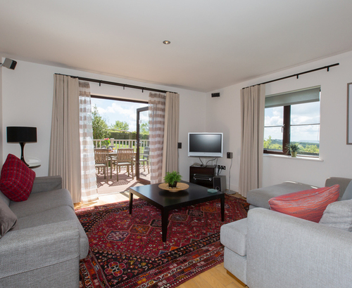 Spacious open plan living, kitchen & dining areaFrench doors leading to furnished decked areaTwo sofas seating five and a dark wood coffee table32” wall mounted flatscreen TV complete with Freeview and surround sound, DVD and CD playerA selection of DVDs and games are available free of charge from reception