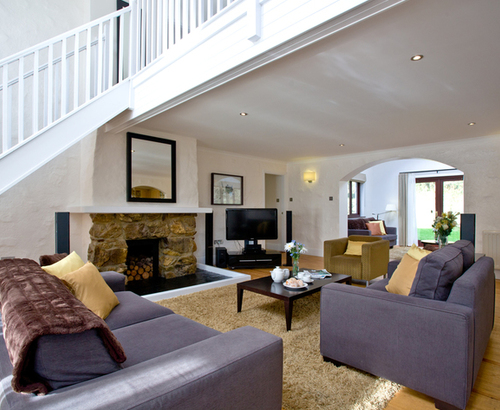 Includes two large sofas, armchair, coffee table, Flatscreen TV with Freeview and fireplace