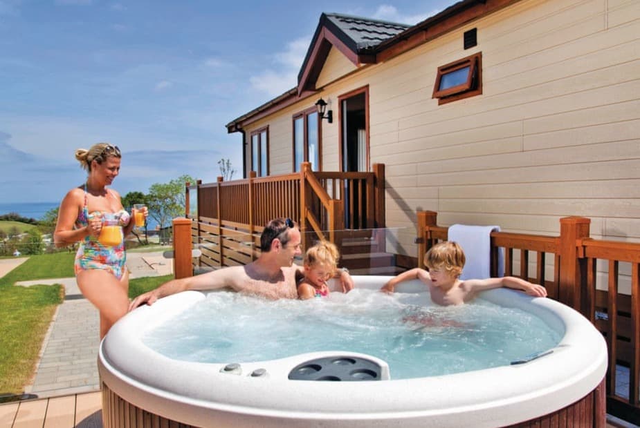 Super 12ft-wide luxurious caravan with one double and two twin. Double glazed and centrally heated. Decking with garden furniture and outdoor hot tub. Complimentary bottle of wine on arrival. Early 2.00pm check in. No pets.