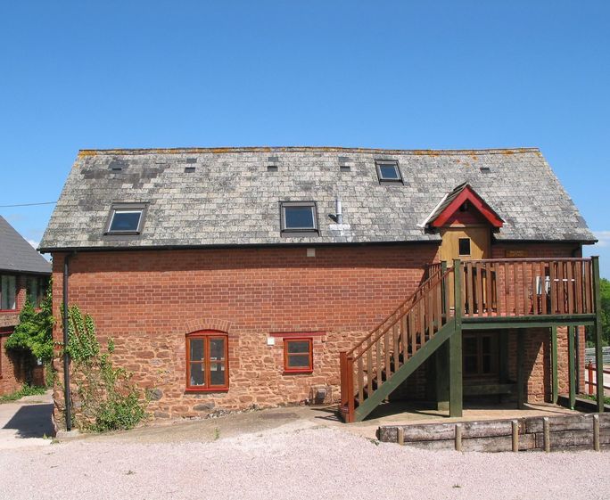 ... in Poltimore, a cottage in the grounds of the owners' 60 acre organic farm which you are welcome to roam. This is 'the good life', totally peaceful: ½ acre lake; four mountain bikes; ponies, alpacas, a goat, chickens and a couple of cats and dogs. Three enclosed garden areas: one with trampoline, slide, swing, climbing frame, one with picnic tables and barbecue, and the other for football, and games barn (half-sized pool table, darts), all shared with two other apartments. Old farm buildings close by, beyond which are stunning views.