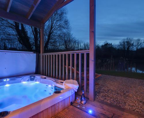 An open plan 2 bedroom luxury lodge, sleeps 4. A peaceful woodland location with stunning lakeside views from the private hot tub.