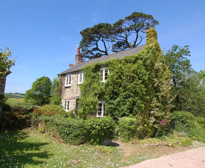 … 2 miles from Aveton Gifford, at the end of 350 yards of tarmac drive and on the side of a very pretty, organically farmed valley, a picture-book detached stone cottage. Numerous footpaths criss-cross the surrounding countryside. The cottage stands very privately on its own with an enclosed garden. To one side, a patio (table/chairs) with long farmland views.