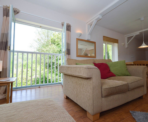 Open plan living, kitchen and dining area located on the first floorAccess to the gardenTwo sofas and one footstool seating fourLog burning stoveFlatscreen TV with FreeviewHi-Fi system