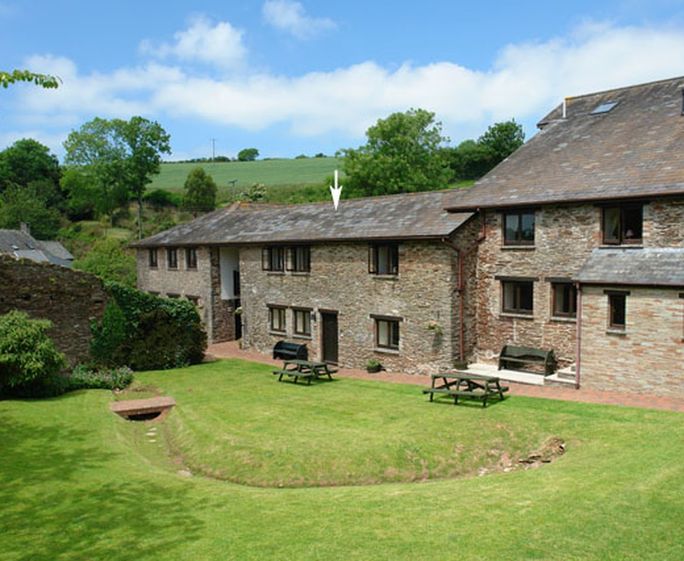 In one of the handsome barns, now converted into accommodation, a first-floor apartment with very pretty garden/orchard views. Inside, fresh, light and contemporary with open-plan living (TV/DVD)/dining/neat fitted kitchen (washing machine, microwave) with pull-down double bed; twin bedroom (linkable to 6’ double) with en suite bathroom (suite, whirlpool bath with shower over). A brilliant place for chilling out.