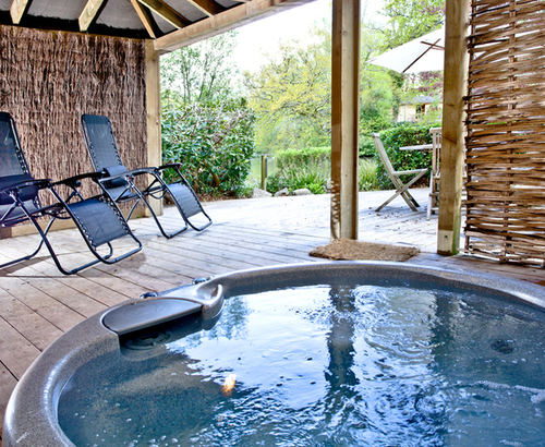 Enclosed terrace areaOpen-sided summerhouse with decking areaPrivate hot tubTable with chairs and two sun loungers
