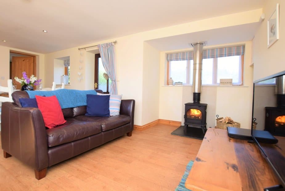 Need to know: 2 bedrooms 1 king size and 1 twin. 1 bathroom. Electric oven and hob, washing machine, coffee machine, microwave and fridge. Electric and central heating included. Wood burner (first basket of logs included, further baskets can be brought on site). Off road parking for 2 cars. Wi Fi included. 3 dogs welcome. Beach 6 miles, shop and pub 2 miles. TV/DVD in lounge and TV in master bedroom. Folding guest bed available on request. Arrival time: 5pm.