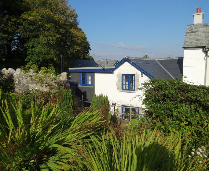 From the front door, passage to small lobby and living room with huge granite-framed inglenook (woodburner) and window seats. Kitchen/dining room with slimline dishwasher, microwave, fridge, electric cooker. Downstairs loo. Under-stairs cupboard with washing machine. Steep stairs up to two bedrooms – to one side of the landing, a pretty single room; to the other side, accessed through a smart bathroom (suite with separate shower), a pretty double under the eaves with second set of twisting stairs down to the living room. Heat supplied by eco-friendly biomass boiler. A welcoming and homely base with beautiful walks from the doorstep.