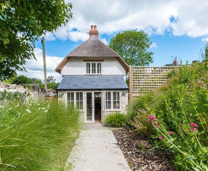 Situated in the heart of the village of Cattistock this cottage is sure to delight all who stay. Church Cottage is a new build thatch cottage holiday home adjacent to the church, assembled to a high standard to ensure clients can enjoy both modern convenience and character all in one. The interior is tastefully decorated with eclectic art from around the world, a relaxing sofa and tasteful throws add to your comfort. Mood lighting, a gas logburner and a huge 48” inch hidden flat screen TV in the lounge will make for cosy nights in during cooler months. French doors open onto a private and well screened terrace and cottage garden, bringing the outside in on those warm summers’ days. There’s also a beautiful further terrace at the rear of the garden with table and chairs for outside dining, with views over the churchyard and village.