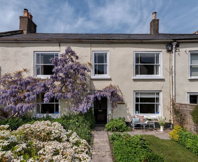 ... set back from the main street in Charmouth and about 7 minutes' walk from the beach, The Old Manor House is beautifully refurbished, early 16th cent., Grade II listed, a comfortable and elegant family house decorated and furnished to a high standard. Steps from a courtyard to large, enclosed and perfectly private, beautifully landscaped walled garden with plenty of grass and sitting-out areas (picnic tables, barbecue).
