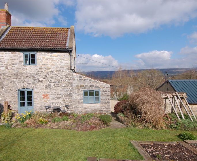 … about a mile from Wookey, in the small hamlet of Yarley, a spacious, stylish cottage converted from an old cider barn attached to the friendly owners’ farmhouse, with outstanding views to the Mendip Hills and Somerset Levels. Private patio (table/chairs) and garden, occasionally shared with the owners, with direct access to a public footpath, the start of lovely walks into the hills and surrounding countryside.