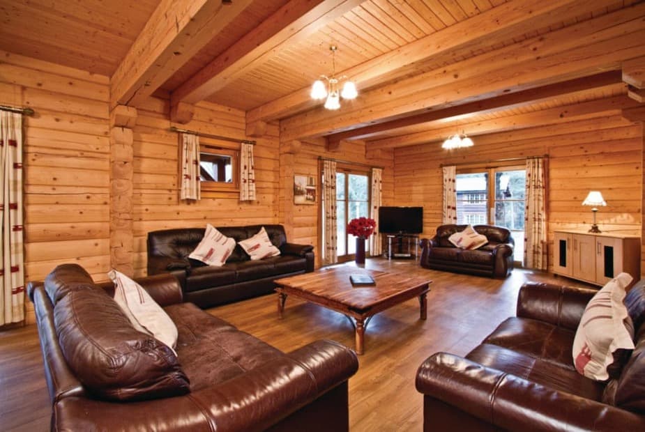 Stunning lodge. Ground floor: One double and one twin. Shower room. Lounge/diner. Kitchen. Outdoor hot tub. First floor: One double with ensuite shower and two twin with shared ensuite shower. Sauna with shower. Balcony with seating area.