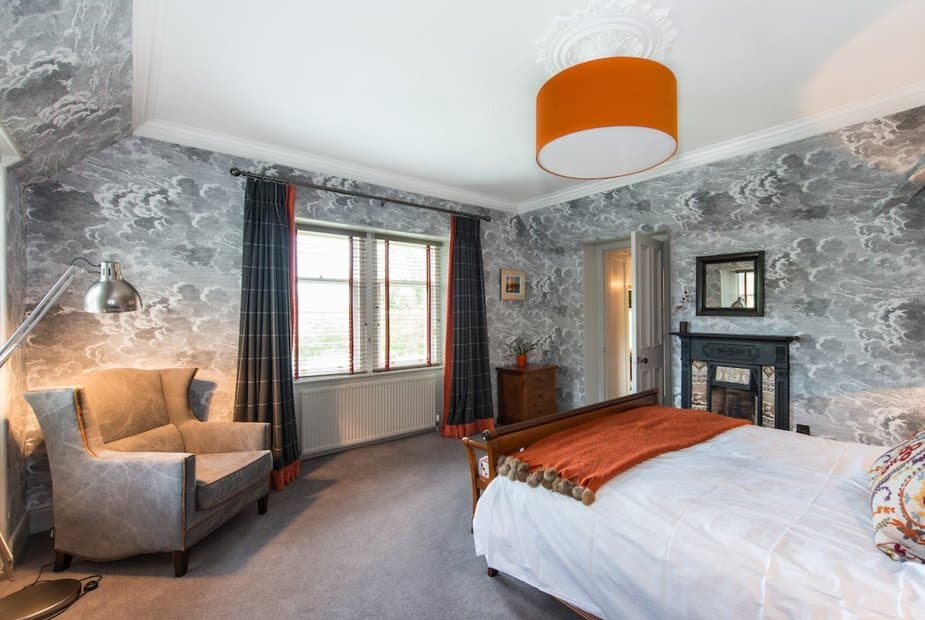 On this floor, you ll also find a handy cloakroom and utility, with a large American style washing machine and dryer. To head upstairs, go back into the hallway and climb the original Victorian staircase to the first floor. Here are all five of the beautiful bedrooms. The king size suite includes a dressing room, accessed via a door and two steps, which is also suitable for a twin bedroom with two J beds provided. It also has an en suite with walk in shower and WC. The remaining bedrooms a double with washbasin, a twin with washbasin (that can also be made into a king size on request), a twin with Juliet balcony (that again can be made into a king size), and a bunk bedroom all have the use of the first floor bathroom.