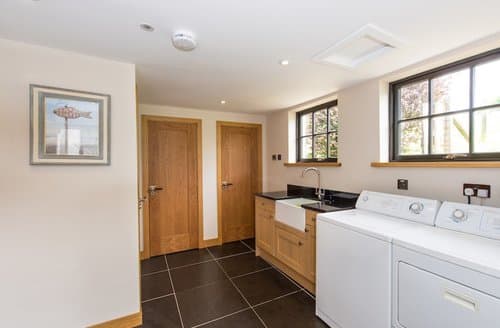 The ground floor boasts an array of beautiful social spaces where your party can gather to relax, talk, and eat. The spacious open plan kitchen/diner is well equipped with an AGA (electric, two door), microwave/grill/oven, bread maker, family food processor, American style fridge/freezer, and dishwasher. There is a kitchen island unit with seats to enjoy nibbles and drinks between meals, as well as the long dining table set before an open fire and a bright bay window. When you re in need of a soft seat, there s the elegantly decorated drawing room with wood burner and TV, through which you can access the pretty garden room which opens onto the terrace, as well as the comfortable family lounge with en suite shower room and WC.