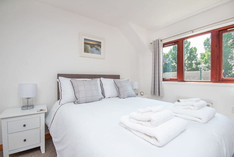 The second bedroom has 2 single beds, bedside cabinets with lamps, double wardrobe and mirror. The bathroom is equipped with a bath with electric air boost shower, wash hand basin and toilet. Outside there is parking to the front of the holiday home for 2 cars. There is a small front garden and secure back garden with gravel. There is an ironing board and iron, hairdryer, travel cot (own bedding required) & high chair. The house has electric heating throughout. Wi-Fi is included. There is a selection of books and games.