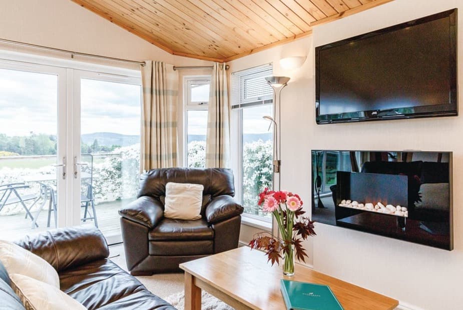 Superb lodge with luxurious and contemporary styling features. One large bedroom with king size double. Bathroom with spa bath and steam/massage shower. Open plan living space with stylish kitchen. Spacious lounge and dining area with doors leading out to decking with open views. Outdoor hot tub. No pets.