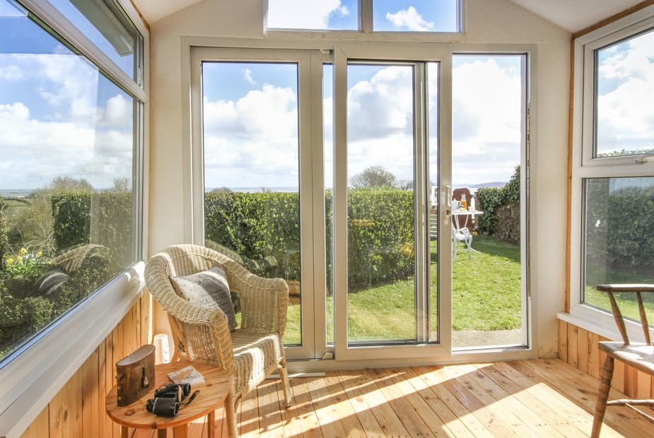 The conversatory is where you’ll find the dining table and chairs. This is a great room with lovely views. Doors in this room open on to small lawned area which is a definite suntrap!