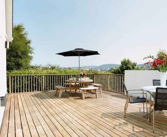 Plas Bach is a modern, open planned family friendly, holiday home, set in its own grounds and situated less than five minutes walk from the beaches. The cottage enjoys spectacular views of the Cardigan coast from its large decked area at the front of the house. To the rear of the property is a private, landscaped garden that includes a patio with a barbecue and a hammock swung from a large old apple tree, a perfect location for relaxing with a glass of wine whilst listening to the sea.
