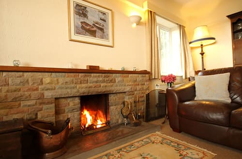 Sitting room with sea views, open fireplace, Smart TV, and DVD and CD players.