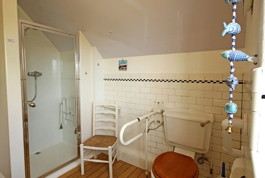The family bathroom is upstairs and has a wash hand basin, loo and walk-in shower that is especially adapted for the less mobile.
